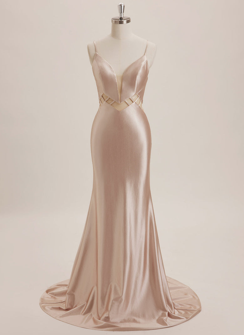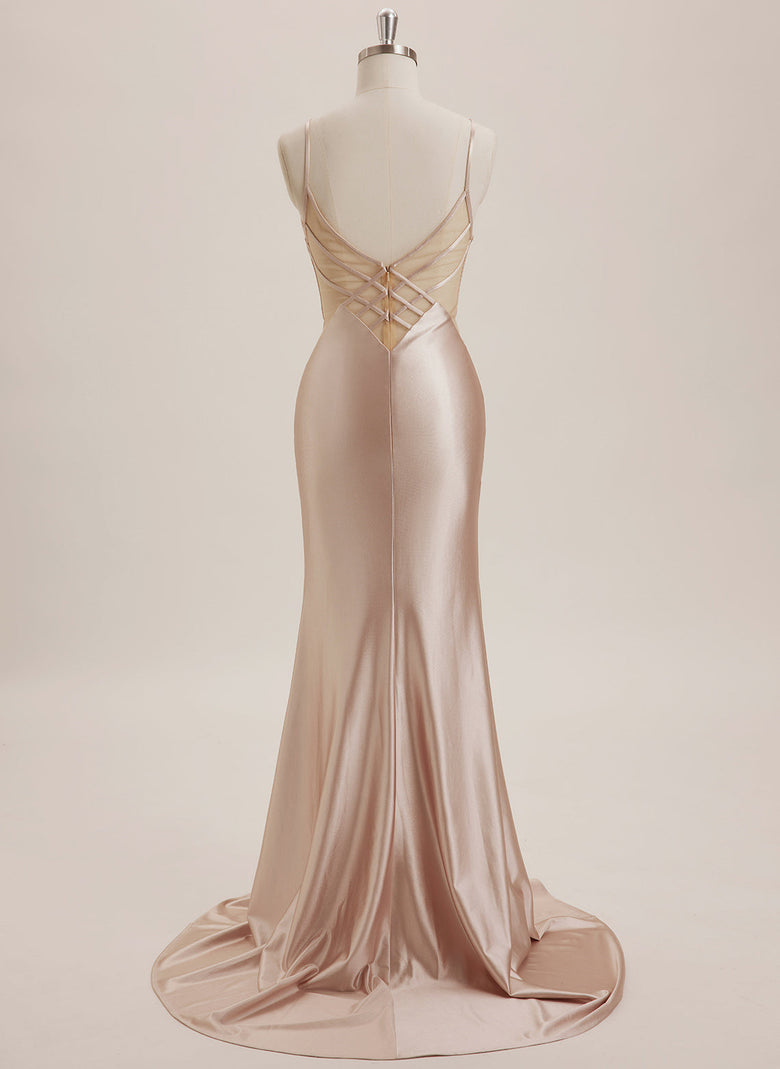 This Trumpet/Mermaid V-Neck Sweep Train Jersey Maxi Dress effortlessly combines elegance and comfort. The V-neck and sweep train add a touch of sophistication, while the jersey fabric ensures a comfortable and flattering fit. Perfect for any formal event, this dress is a must-have addition to any wardrobe.